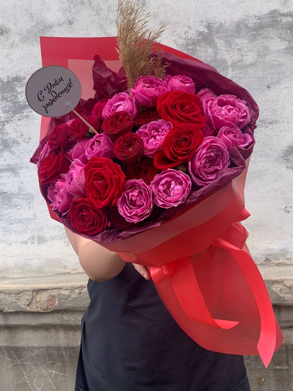 При покупке букета на один адрес от 3000 рублей букет магнит и открытка в подарок